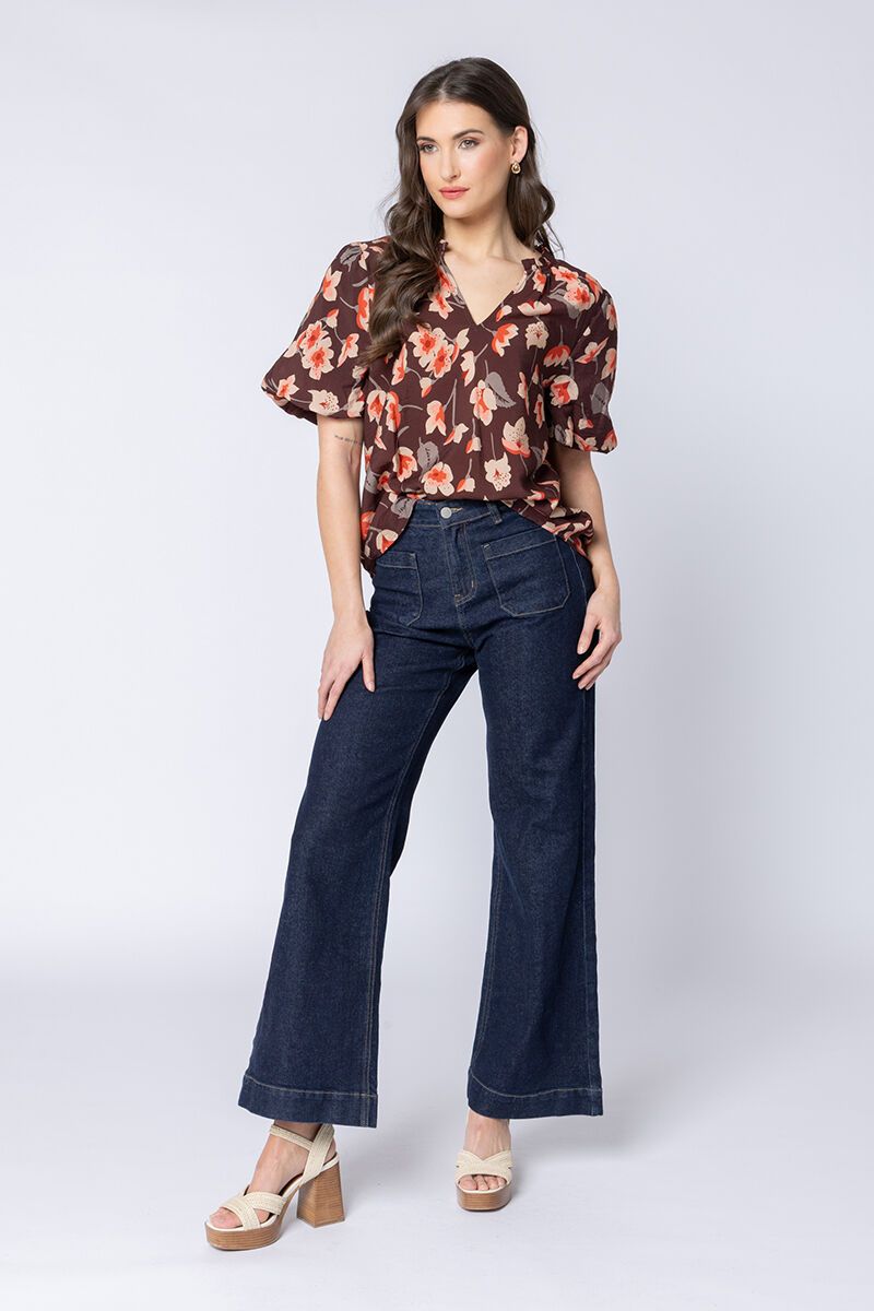 The Seeking Lola Nutmeg Glow Treasure Top adds a warm, feminine touch to your everyday look. With its soft gathers, puff sleeves, and easy shape, it’s made for pairing with denim or linen for that effortless mix of polish and ease.