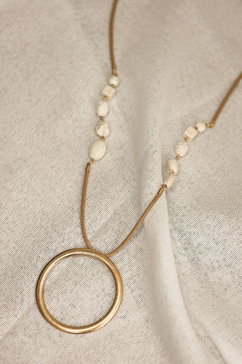 The She Jewellery Ivory Halo Necklace brings a soft, natural feel to your look. Beaded detailing with a statement halo pendant—easy, relaxed, and the perfect piece to add interest to everyday outfits.