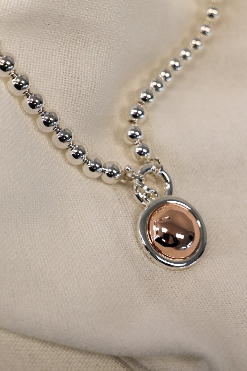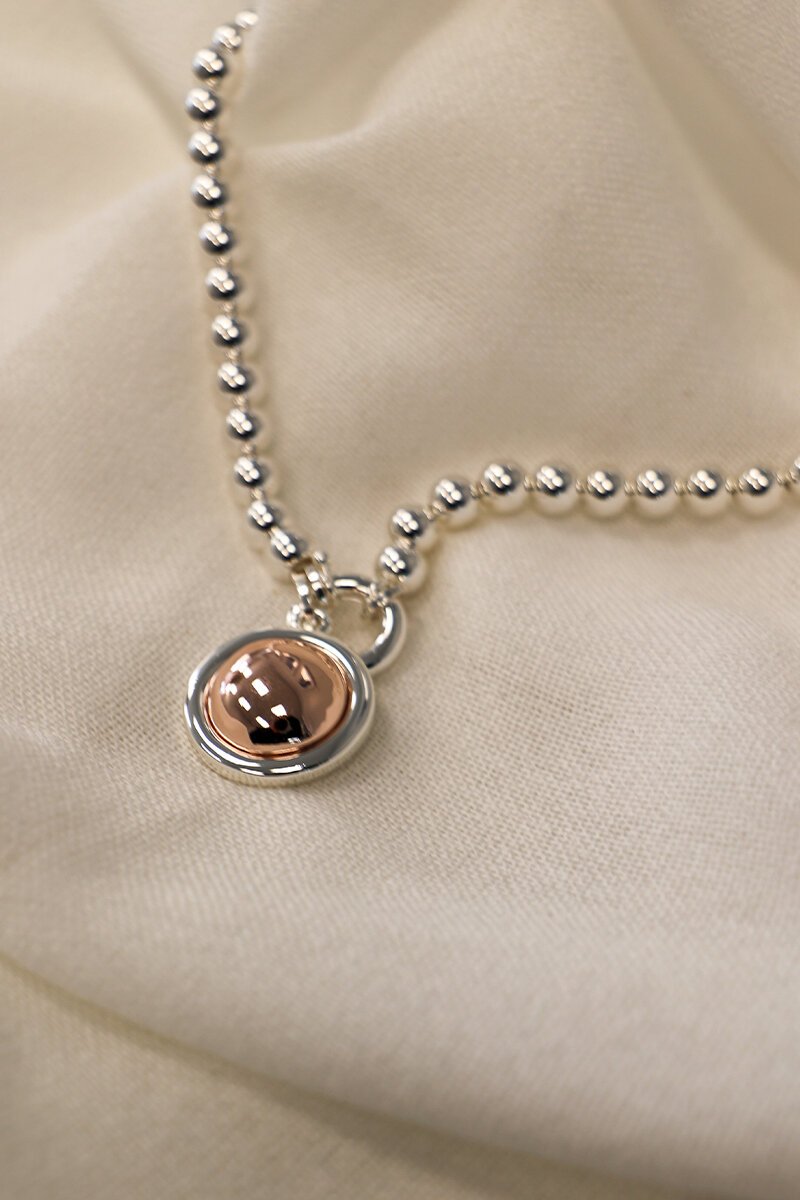 The She Jewellery Orbit Bead Necklace is sleek, sculptural, and endlessly wearable. Its smooth beaded chain and round pendant design give a polished, modern finish — perfect for adding a little understated shine to both casual and dressier looks.