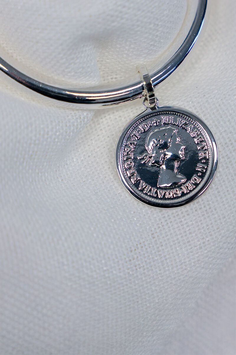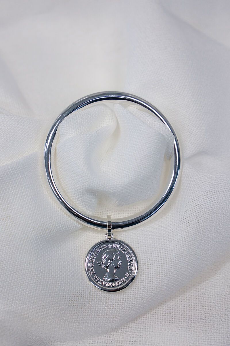 Simple but striking, this polished bangle adds an elegant edge to your everyday rotation. With a classic shape and sleek charm detail, it's one of those pieces you'll reach for when you want to elevate your off-duty look.
