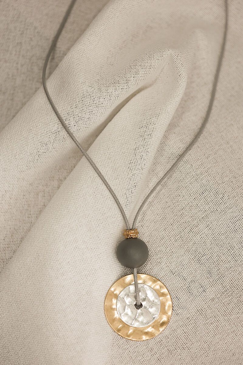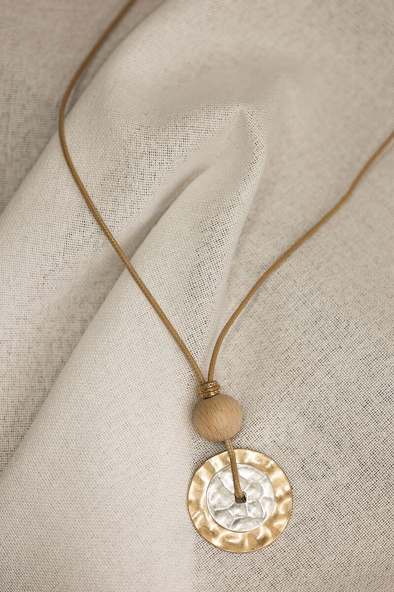 The She Jewellery Soleil Necklace brings an easy, natural feel to your look. A textured disc with mixed tones and bead detail on a soft cord—relaxed, eye-catching, and perfect for everyday wear.