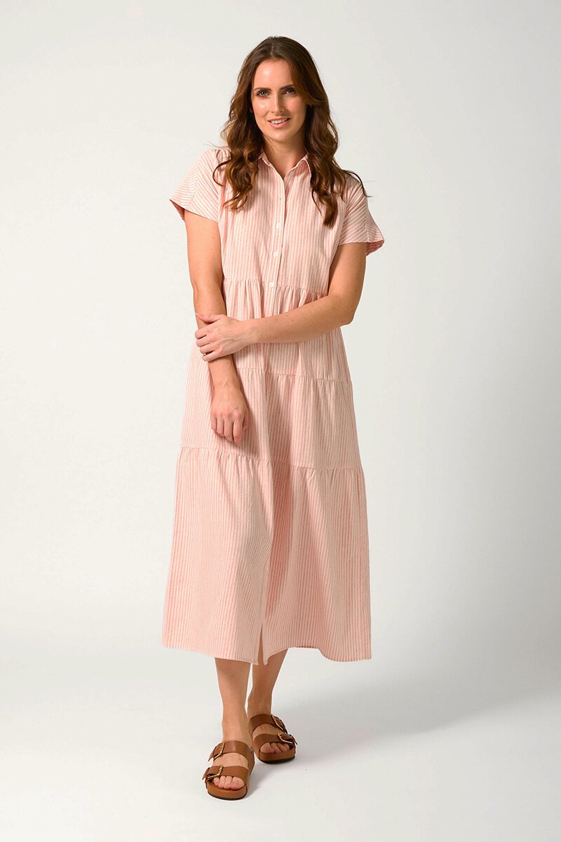 The Stella + Gemma Antonia Stripe Dress is an easygoing staple you’ll keep reaching for all season. Designed with soft stripes, a button-up front, and a relaxed tiered shape, it’s perfect for everyday wear. Style it with slides or sneakers for effortless spring dressing.