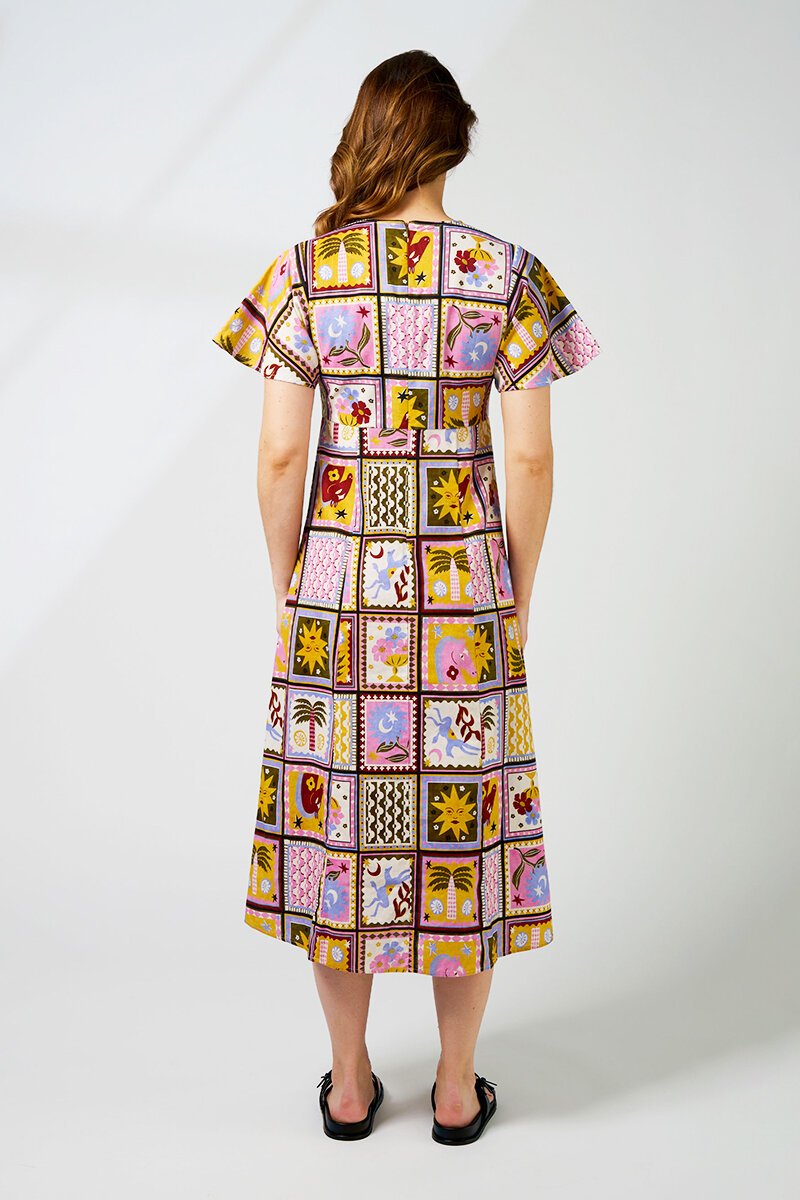 The Stella + Gemma Carlotta Dress is made to stand out. With flutter sleeves, a gently fitted waist, and a swishy midi skirt, it’s the bold tile print that really steals the show. Pair with sandals and let the dress do the talking.
