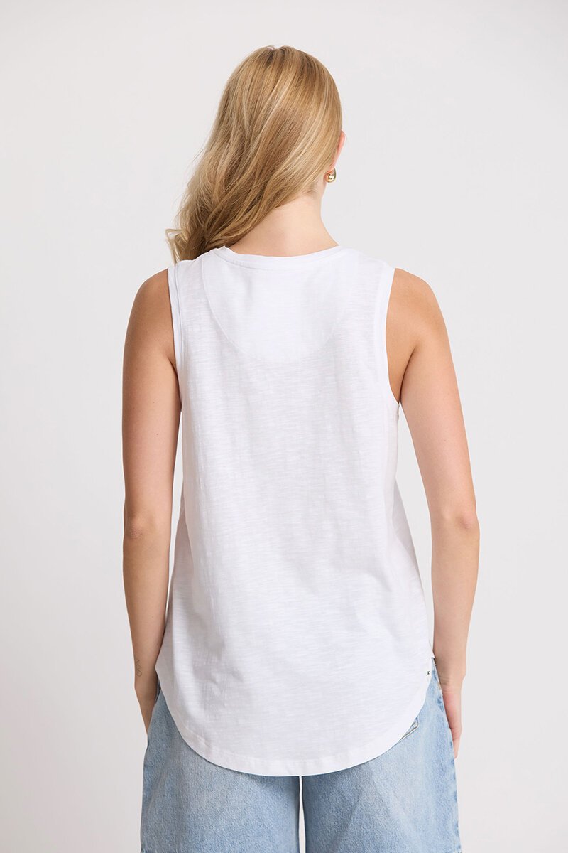 Stella + Gemma’s Everyday Tank is your warm-weather go-to. A soft, easy drape with a clean round neckline and subtle S+G detailing. Perfect with denim, shorts or layered under a linen shirt – the kind of staple you reach for on repeat.