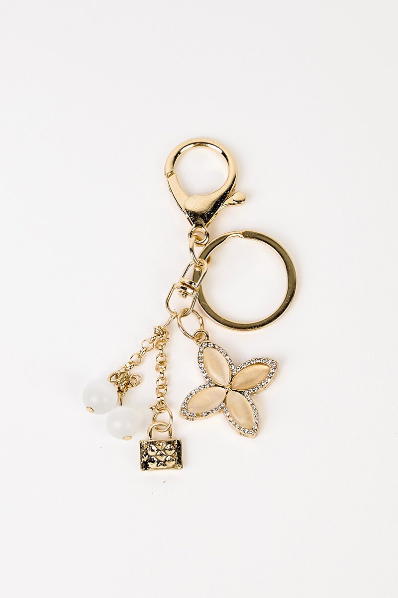 Stella + Gemma Flower + Lock Keychain features a statement floral charm with delicate bead details and gold-tone hardware. A lovely way to dress up keys or clip onto your favourite bag.