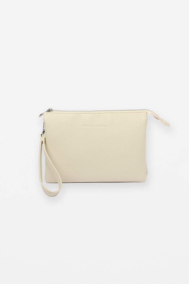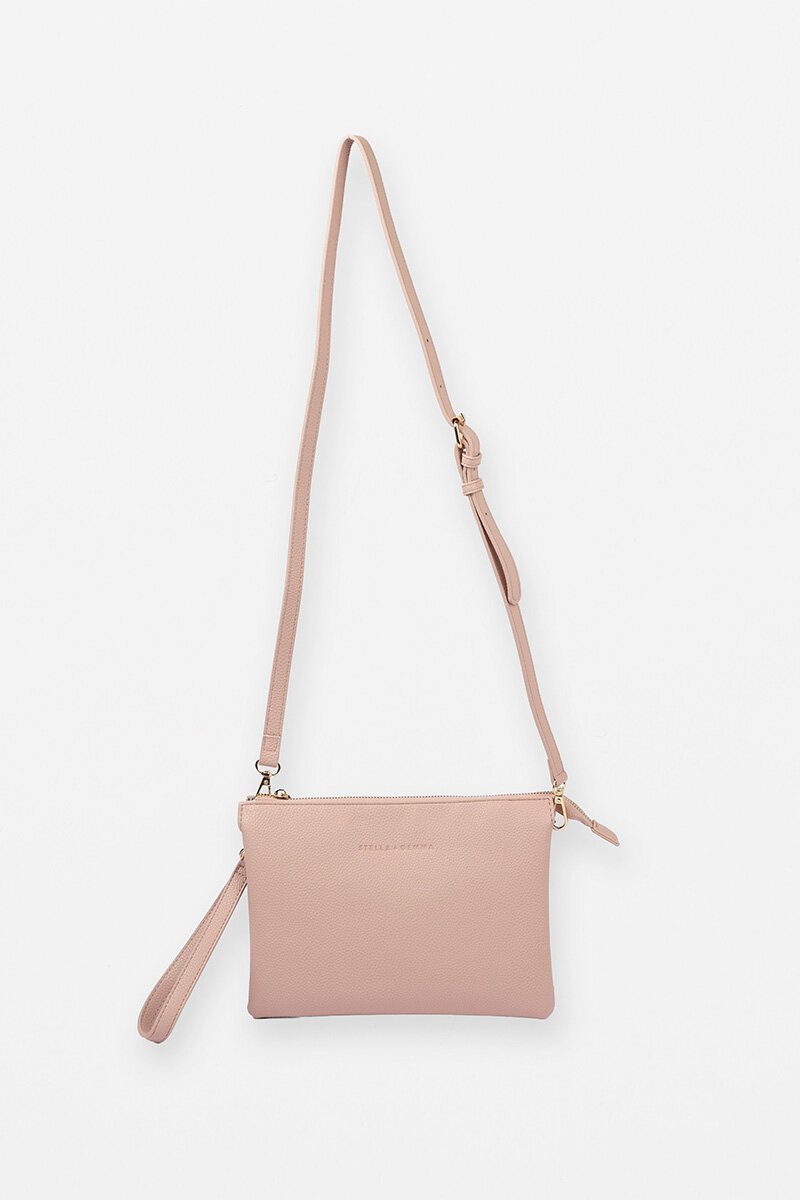The Stella + Gemma Frankie Pouch Bag is sleek and practical, with a zip closure, detachable wrist strap, and adjustable crossbody strap. Easy to wear, easy to love.