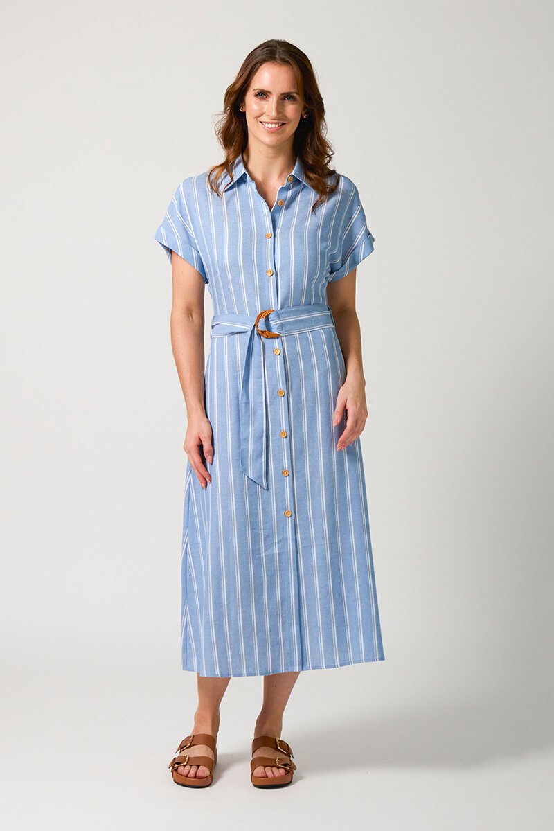 The Stella + Gemma Kinsley Dress is an easy classic with its shirt-style cut, belted waist, and relaxed fit. The button-through front adds a touch of polish, while the soft fabric keeps it comfortable and breezy. Perfect for weekends, workdays, or summer getaways.