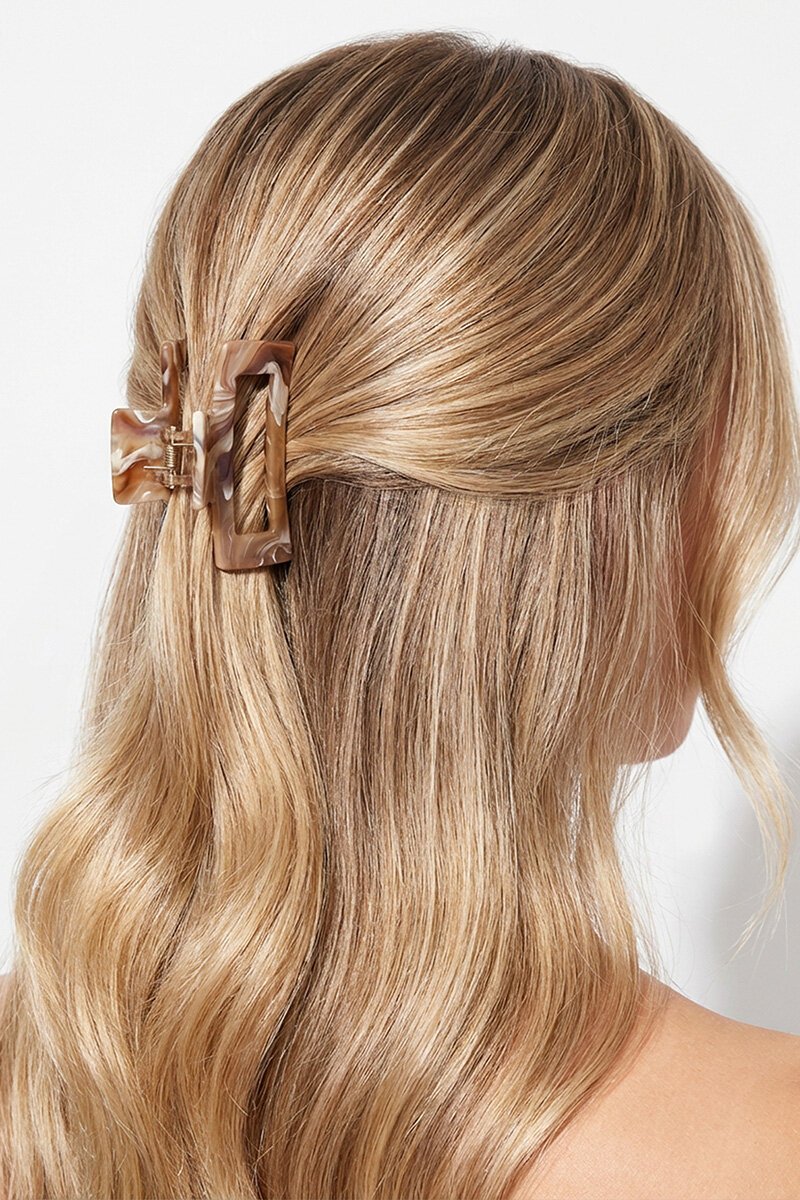 The Stella + Gemma Marbled Caramel Hair Claw adds easy polish to everyday hair. With a glossy marbled finish and reliable hold, it’s ideal for quick twists, half-ups, or relaxed off-duty styling.