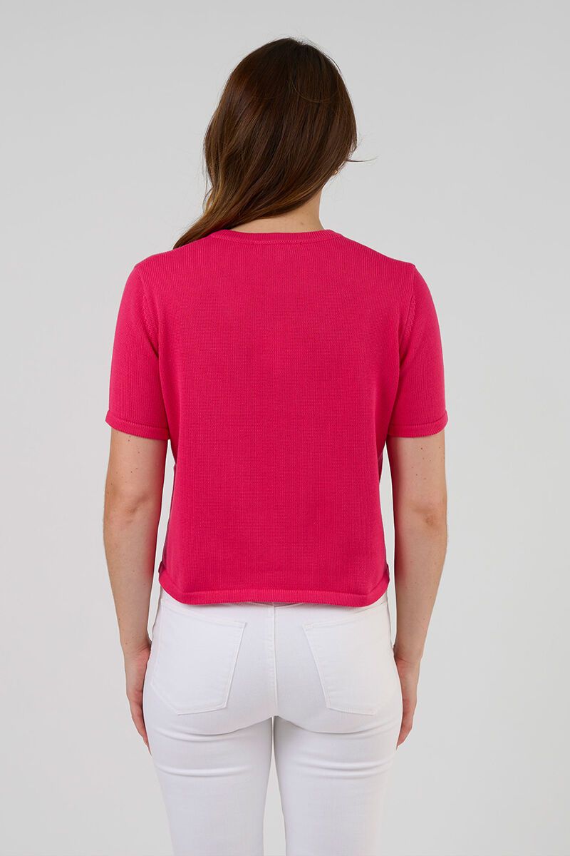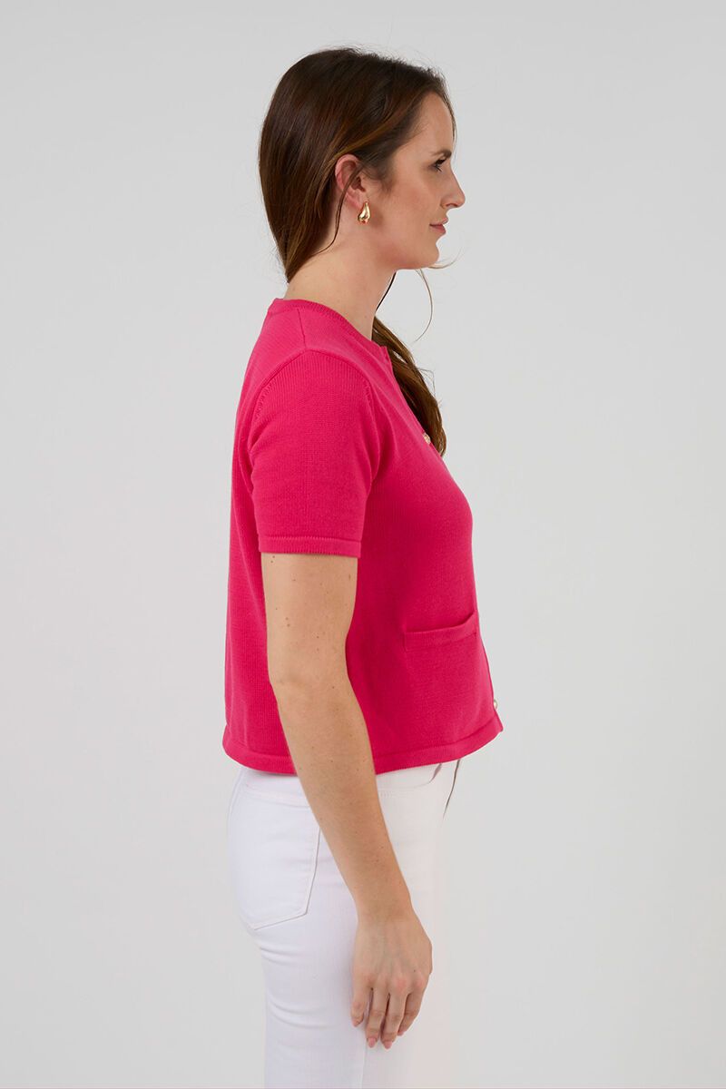 The Stella + Gemma Rue Cardi is the cropped knit you didn’t know you needed. With short sleeves, it’s a polished layer that still feels playful. Perfect buttoned up or worn open over a tank.
