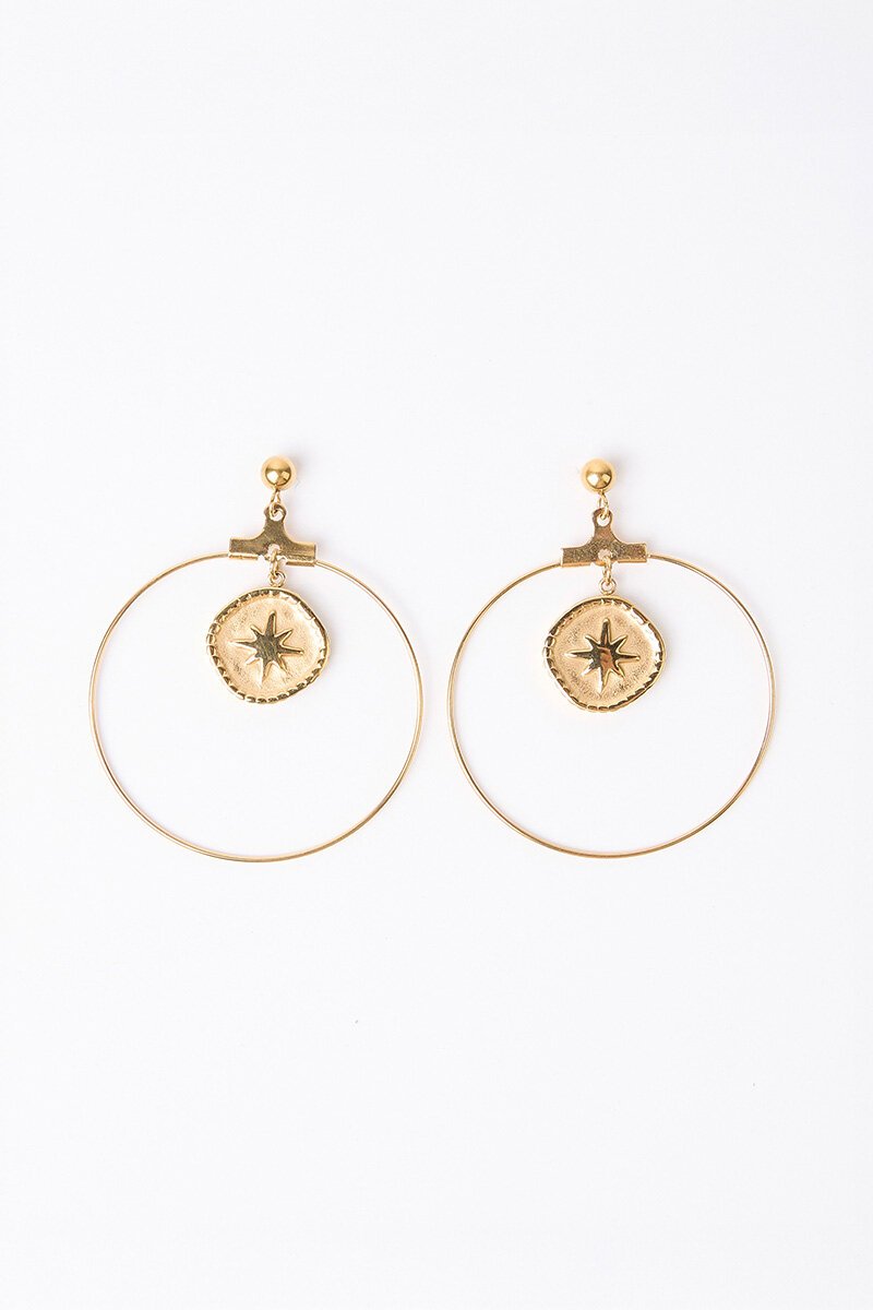 The Stella + Gemma Star Hoop Earring features a fine hoop with a hanging star charm. Lightweight with subtle shine, they add interest to everyday looks without feeling overdone.