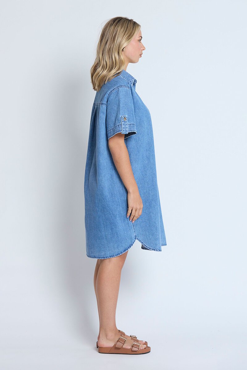 The Stella + Gemma Vinnie Dress is an easy shirt-style denim dress with a relaxed fit, button-through front, short sleeves, and practical pockets. Casual, comfortable, and effortlessly wearable.