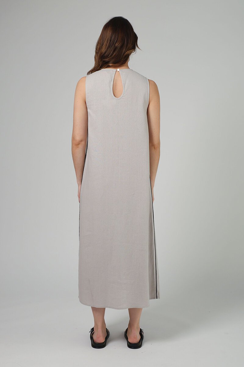 The Stella + Gemma Zora Dress is understated yet chic. With its sleeveless cut, flowing silhouette, and contrast piping down the sides, it’s the throw-on style that feels polished without trying. Slip on sandals and you’re instantly summer-ready.