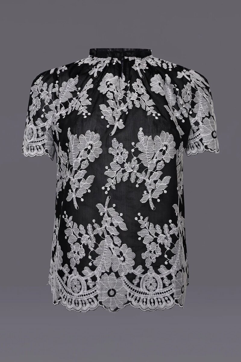 The Storm Embroidered Rush Top is a statement piece with timeless elegance. Crafted from sheer fabric and detailed with bold floral embroidery, it strikes the perfect balance between feminine and edgy. Designed with puff sleeves, scalloped edges, and a flattering relaxed fit—this top looks stunning dressed up with tailored pants or styled casually with denim.