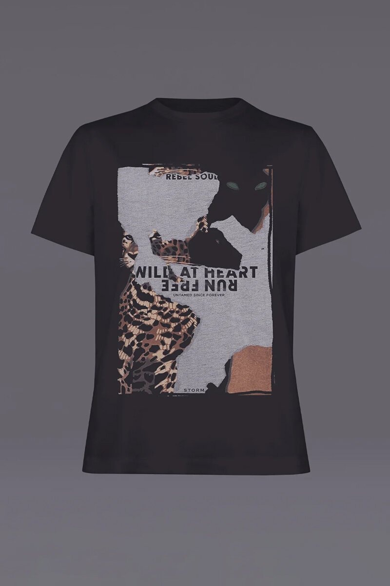 The Storm Wild At Heart Print Tee brings attitude and edge to your everyday look. Crafted from soft cotton, it features a bold graphic print with a vintage feel and a relaxed, easy fit. Style it tucked into tailored pants or worn loose with denim for that effortlessly cool, off-duty vibe.