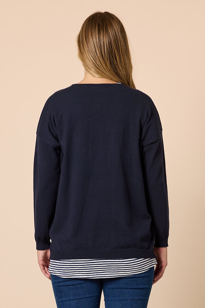 Threadz Double Take 2 in 1 Top is an easy layered look in one simple piece. Featuring a relaxed fit with contrast underlayer detail, it gives the appearance of styling without the effort—perfect with denim for everyday wear.