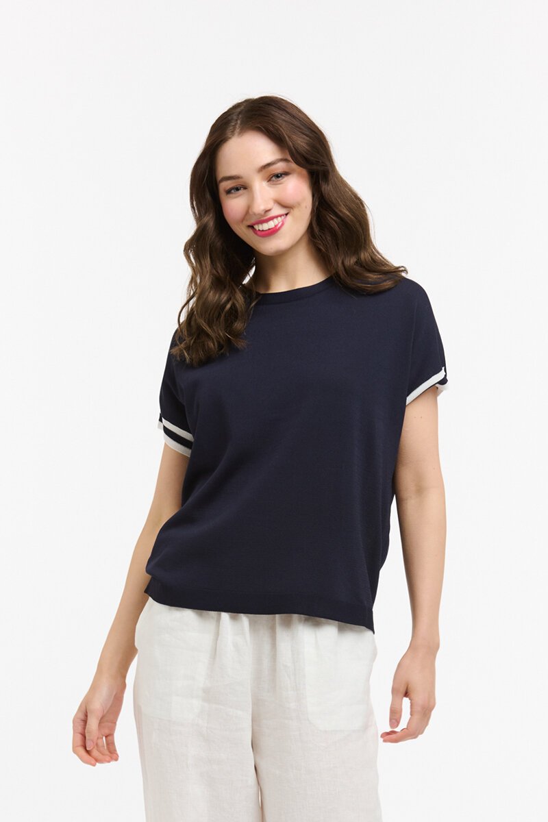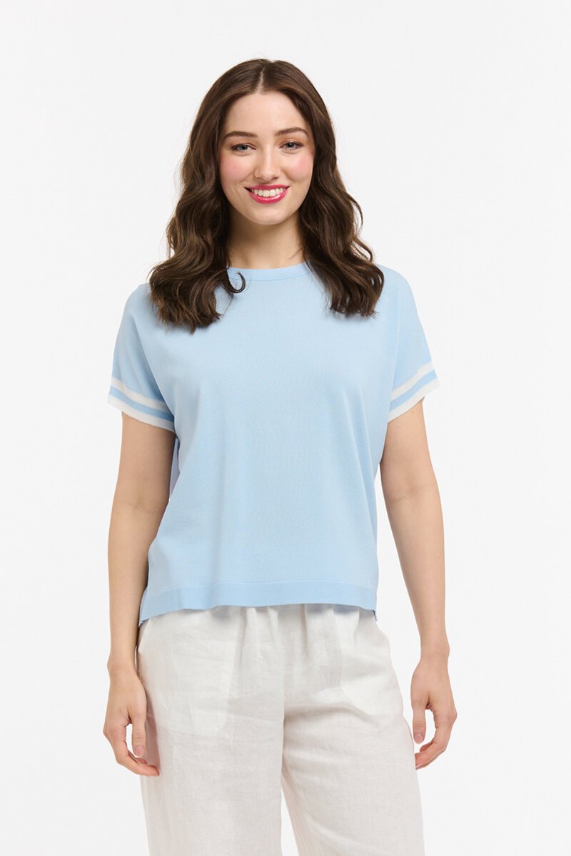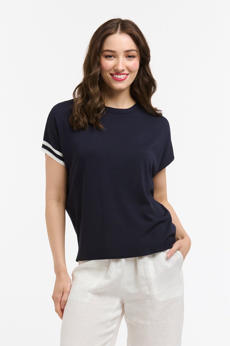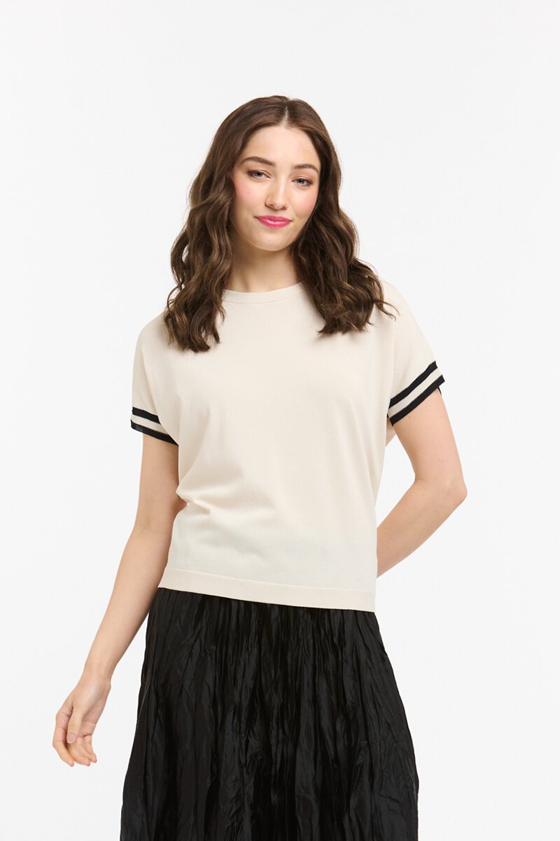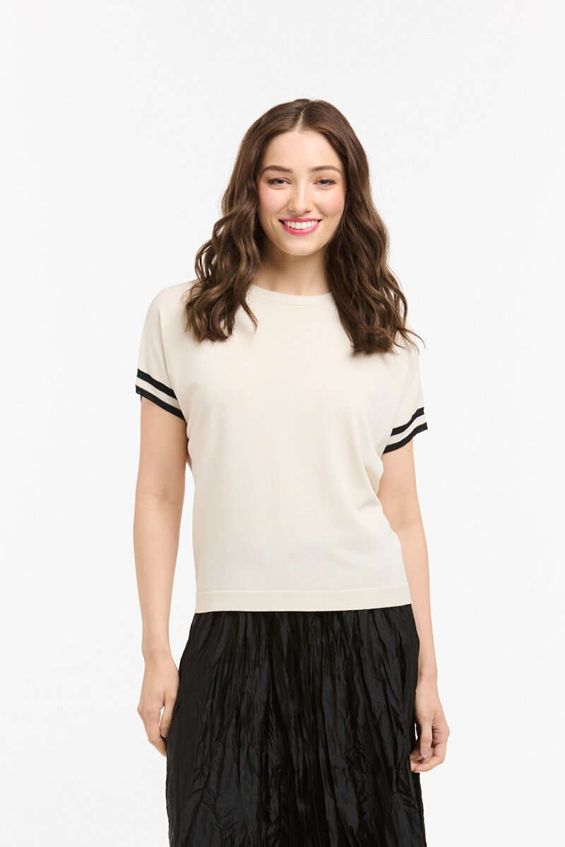 The Urban Luxury Knit Top with Stripe Cuffs is laid-back polish at its best. Crafted from a soft, lightweight knit with contrast sleeve stripes, it gives subtle sporty energy while staying refined. Perfect with tailored pants or an easy midi for a fresh, modern look.