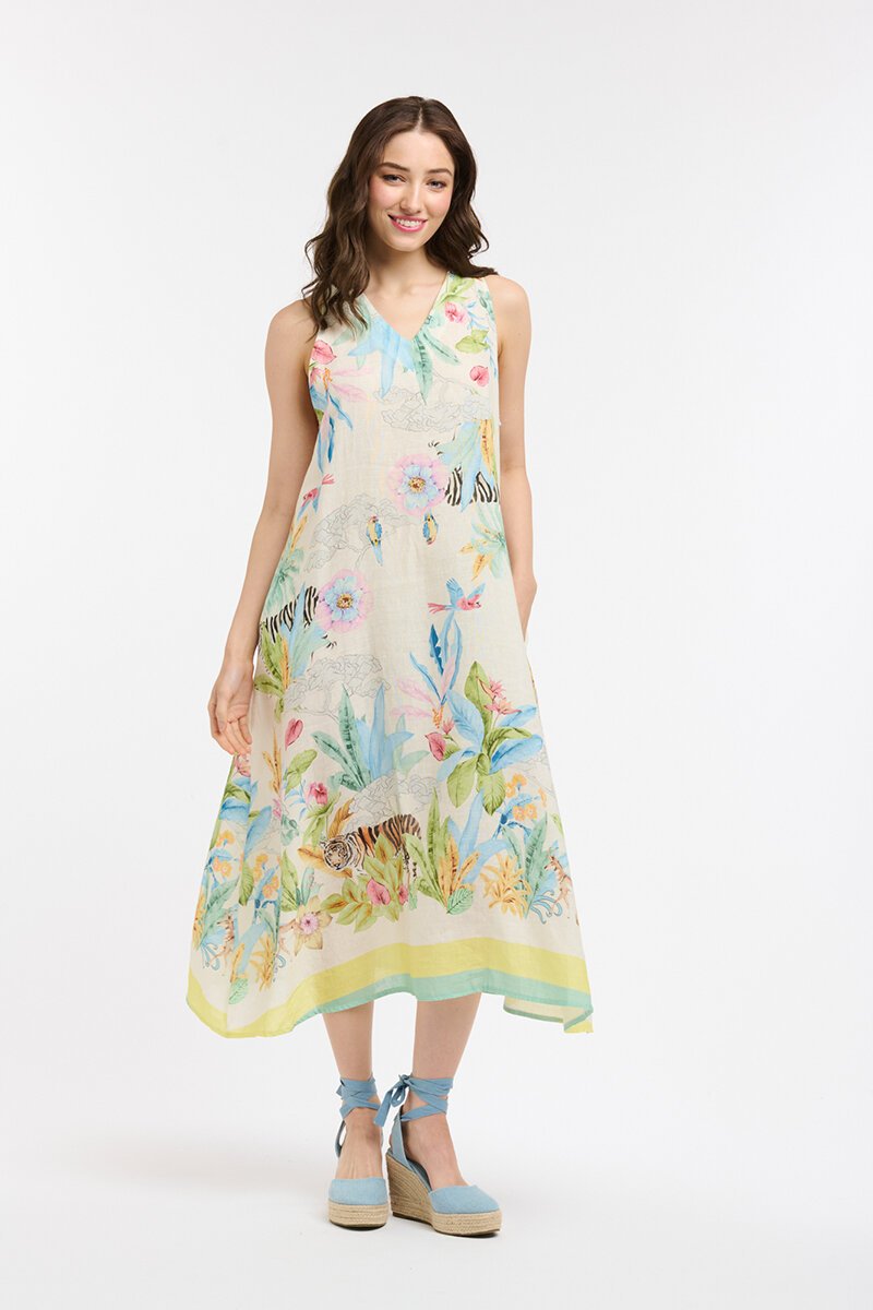 The Urban Luxury Linen Sleeveless Dress is pure sunshine in dress form. Crafted from breathable linen with a floaty A-line shape and playful tropical print, it’s the perfect mix of comfort and holiday charm. Style it with sandals or wedges for effortless summer days.