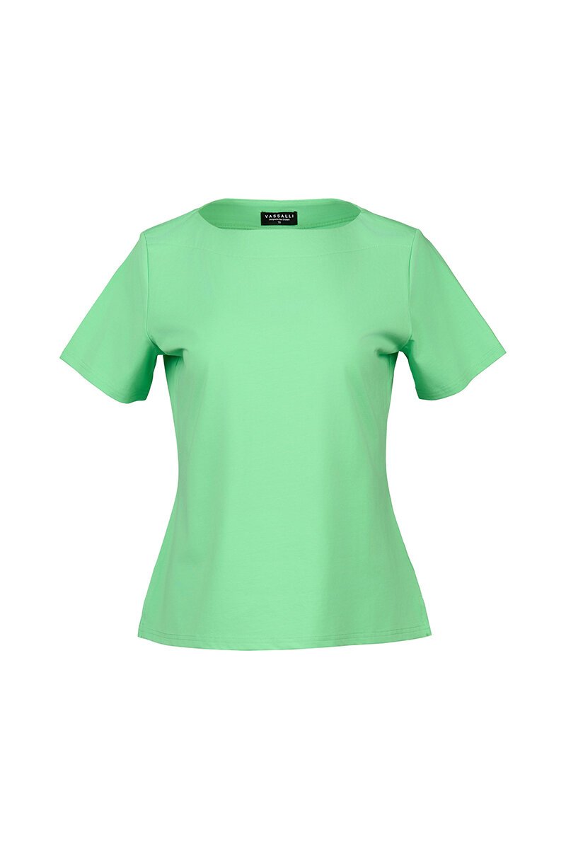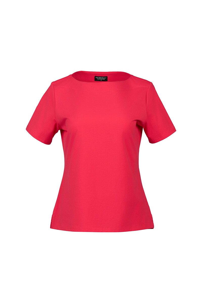 The Vassalli Boat Neck Top is your go-to for effortless style and comfort. Crafted from soft, breathable stretch cotton, it features a clean neckline, short sleeves, and a flattering silhouette that pairs perfectly with jeans, skirts, or tailored pants.