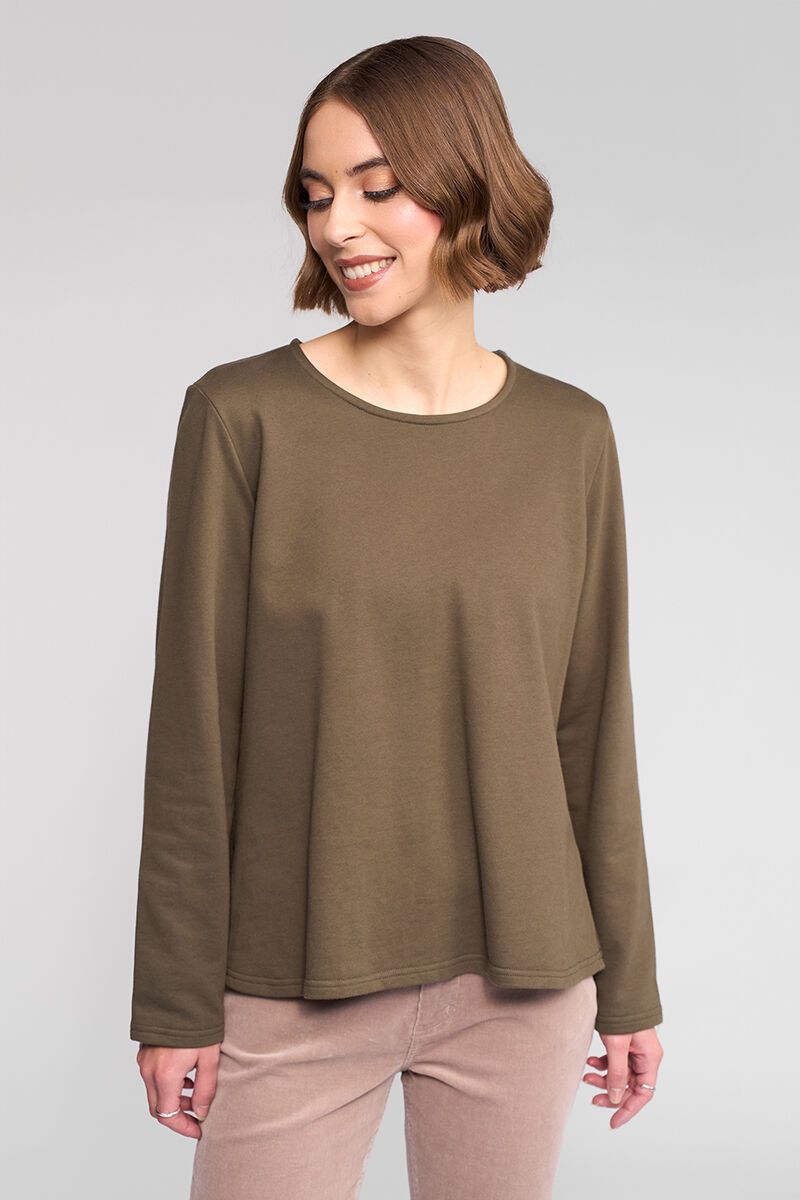 Relaxed long sleeve top in winter-weight cotton sweatshirt fabric, designed for everyday comfort. Clean, casual and easy to layer, it’s a versatile staple you’ll reach for all season, long term.