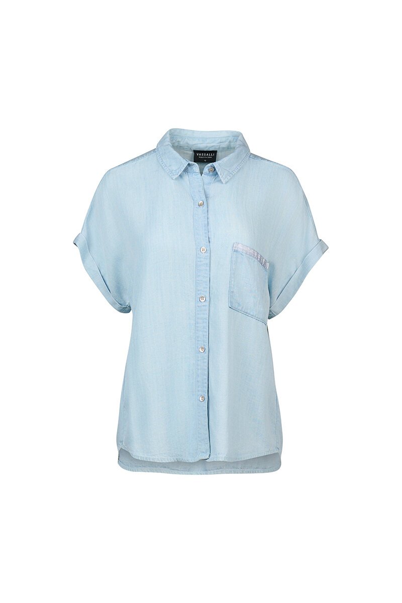 The Vassalli Dropped Shoulder Shirt with Contrast Pocket is a casual staple with a polished twist. Made from soft, breathable chambray, it features a button front, rolled sleeves, and a subtle contrast trim on the chest pocket — easy, light, and endlessly wearable.