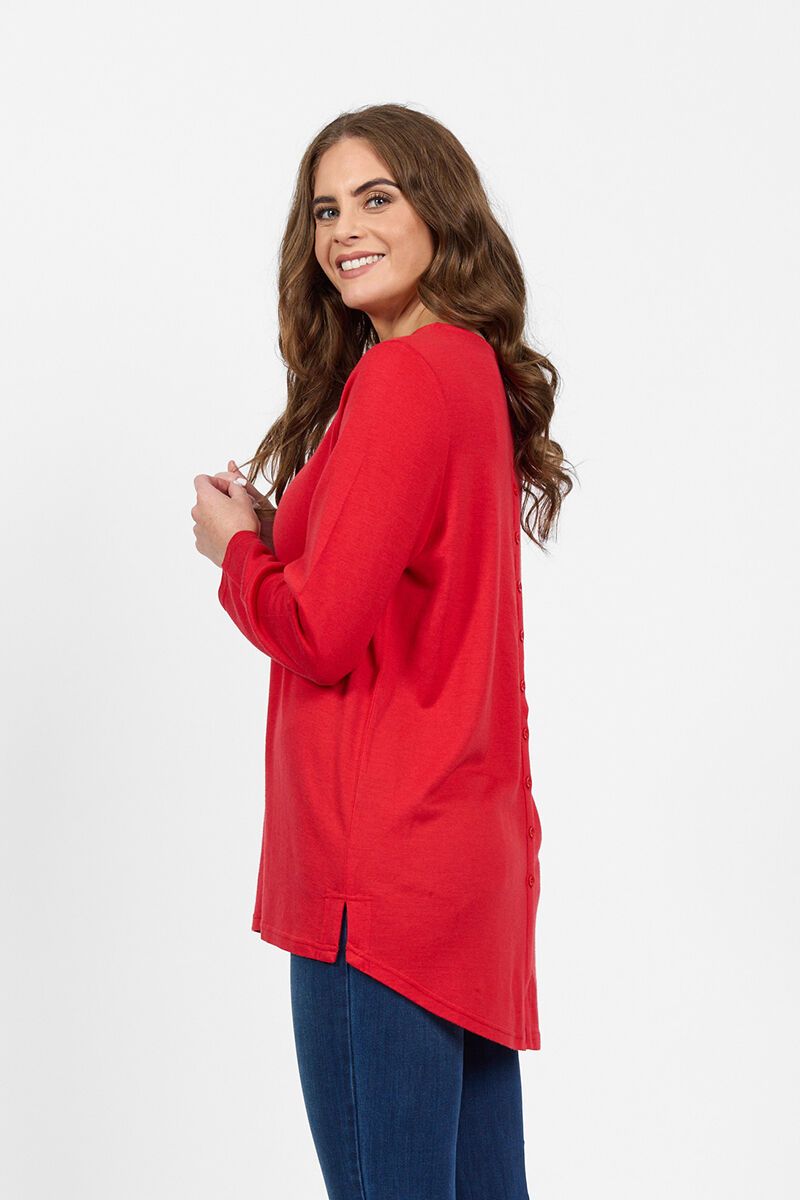 Vassalli Merino Plain L-S Back Button Placket Top