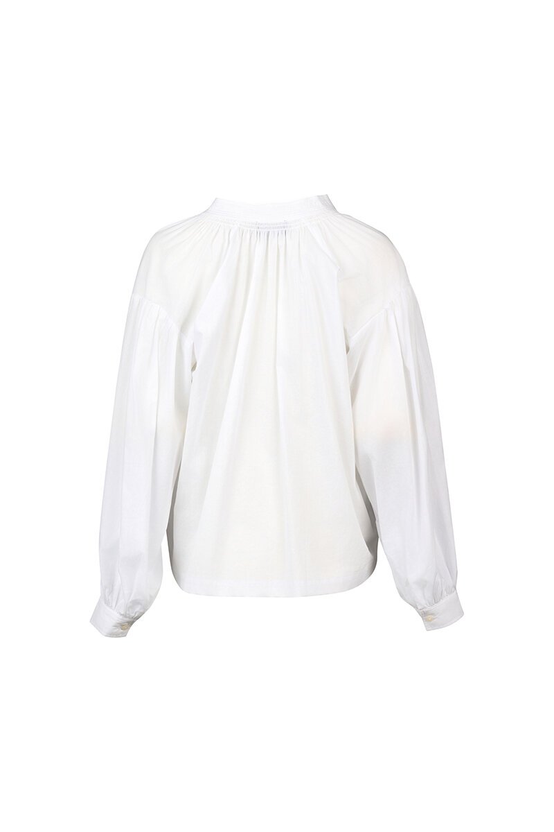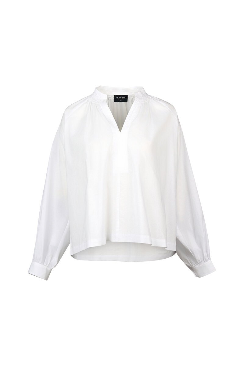 The Vassalli Placket Shirt with Balloon Sleeve brings a soft, feminine edge to classic shirting. Featuring a relaxed silhouette, gathered neckline, and billowy sleeves with button cuffs, it’s perfect tucked into tailored pants or paired with printed crops for an easy, polished look.