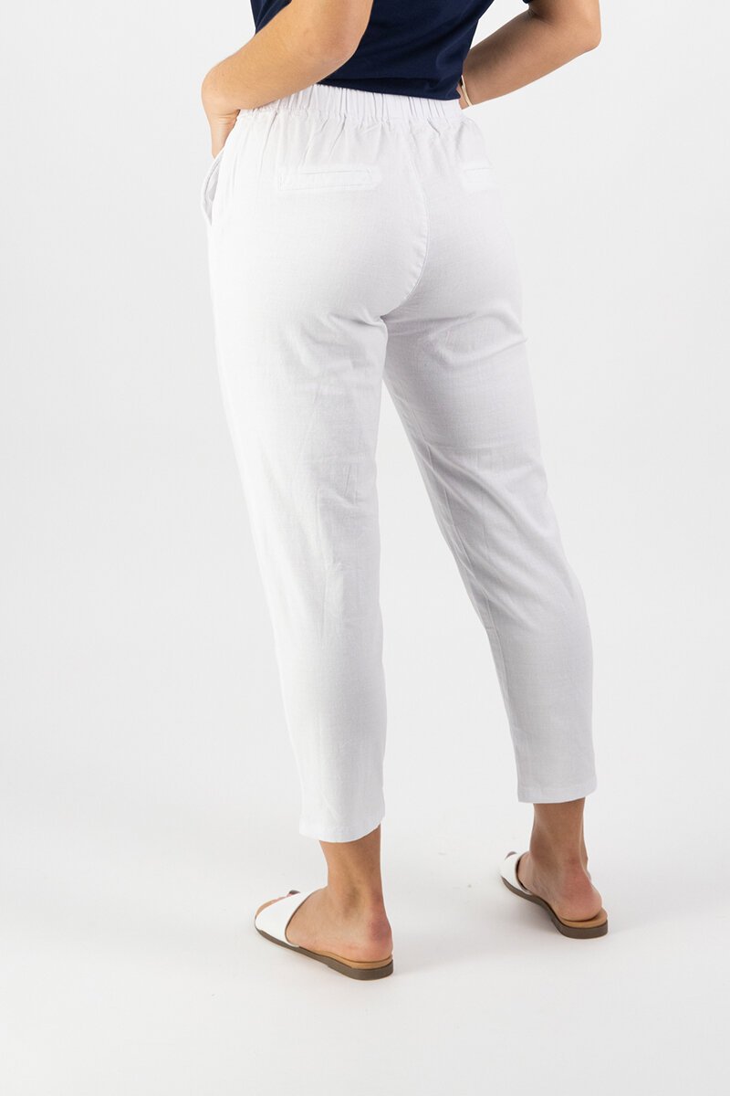 The Vassalli 7/8 Elastic Waist Pants are a warm weather favourite, offering comfort and style. With a relaxed-leg fit, elasticated back, and drawstring waist, they provide a sleek look. Pair with a blouse and flats for a coffee meet-up or with sneakers and a tee for casual errands.