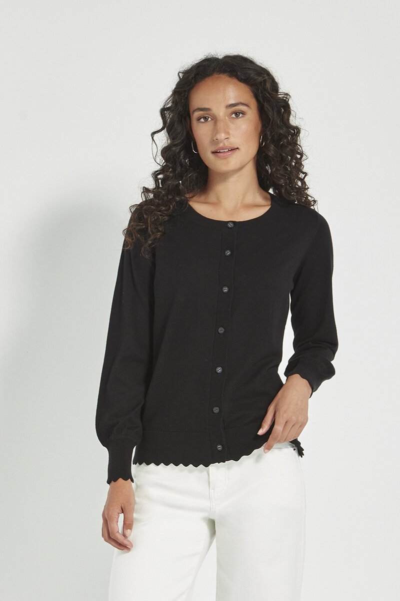 The Verge Sass Cardi is your easy, everyday layer with a playful twist. Soft, lightweight, and finished with subtle scallop detailing, it’s the perfect button-up cardi to throw over tees, tanks, or dresses when you want simple style with a little personality.