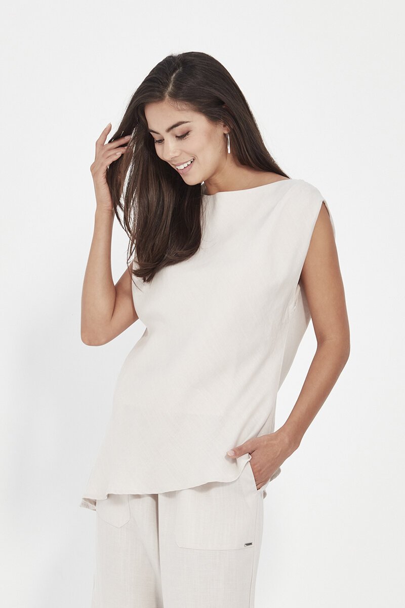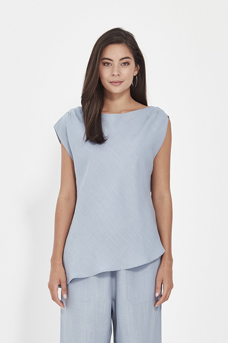 The Verge Soho Top — light, effortless, and endlessly wearable. Made from breathable linen with an elegant boat neckline and asymmetric hem, this sleeveless style drapes beautifully on the body. Pair it with the matching Soho Pant for a relaxed summer set.