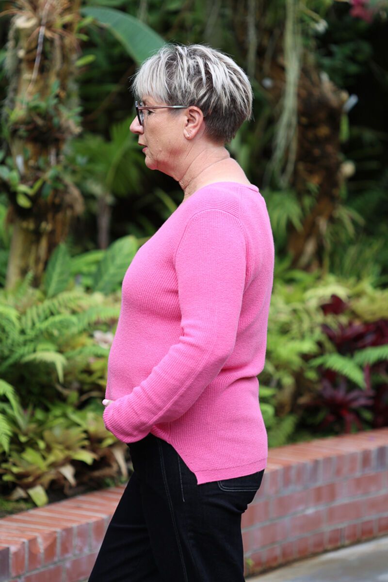 Jo is wearing a size Medium in the Pink and a size Large in the Blue