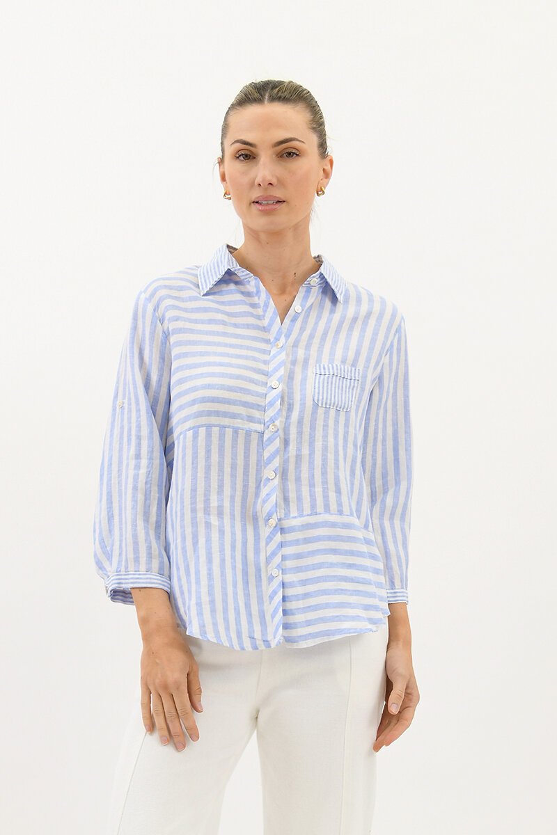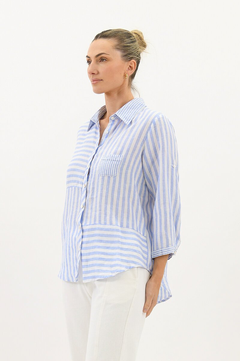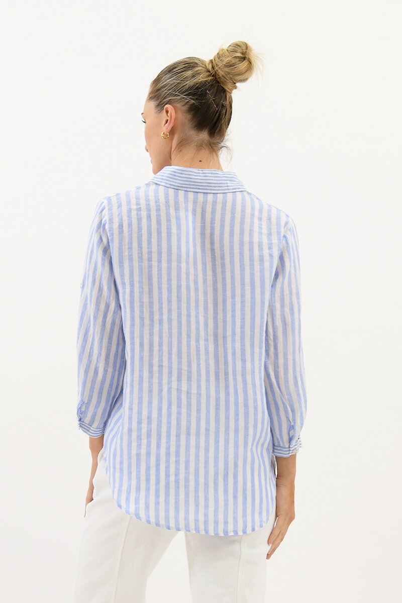 The Worthier Linen Stripe Collar Shirt is that easy, everyday piece you’ll keep reaching for. Designed in a lightweight linen blend with a relaxed fit, it features roll-up sleeves, a button front, and a neat collar for that effortless put-together look.