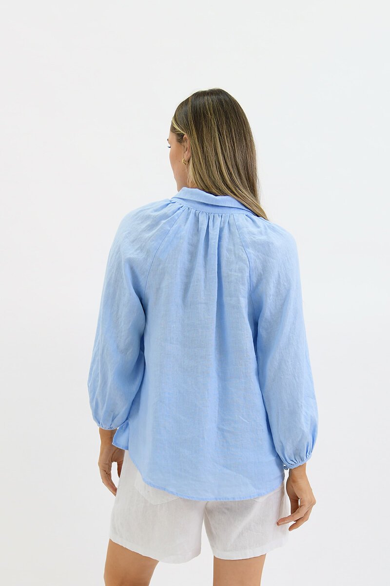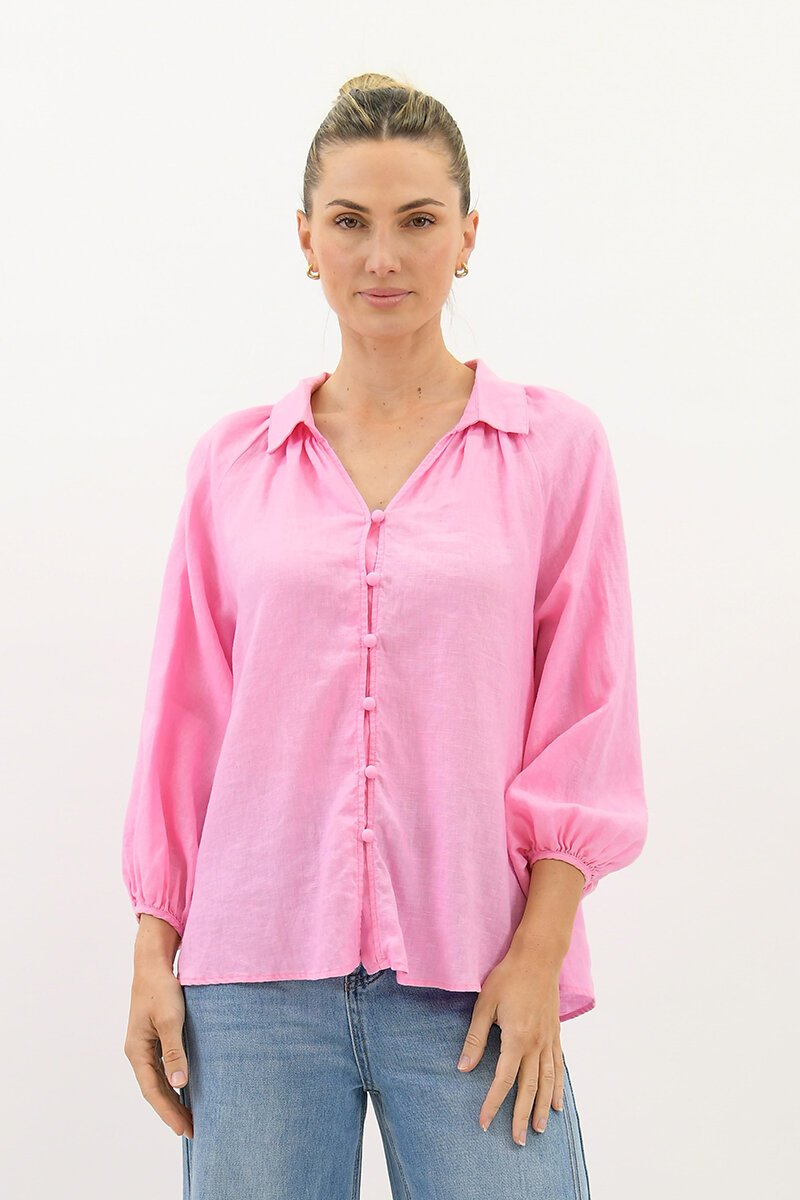 The Worthier Maia Linen Blouse brings a soft, feminine touch to your everyday look. Designed with delicate covered buttons, gathered sleeves, and a relaxed silhouette, it’s perfect for days when comfort and style go hand in hand. Pair with linen shorts or tailored pants for easy elegance.