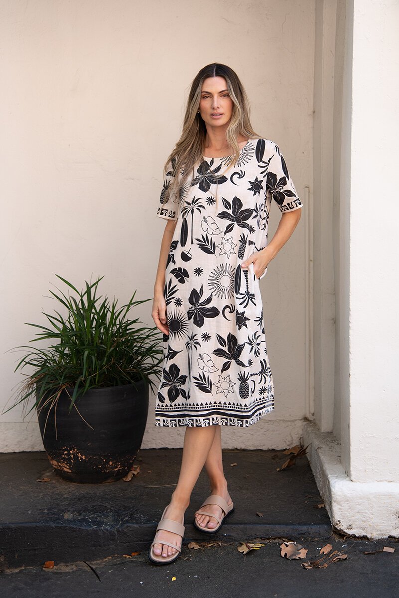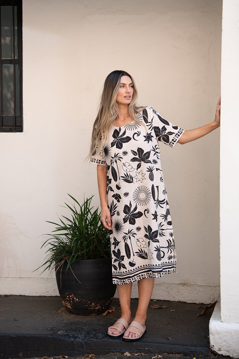 The Worthier Noir Fleur Linen Blend Dress is summer ease done right. With its breezy silhouette, short sleeves, and statement floral print, it’s made for warm days and relaxed weekends. Pair with slides or sneakers for effortless everyday style.
