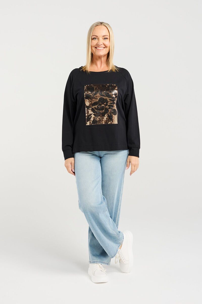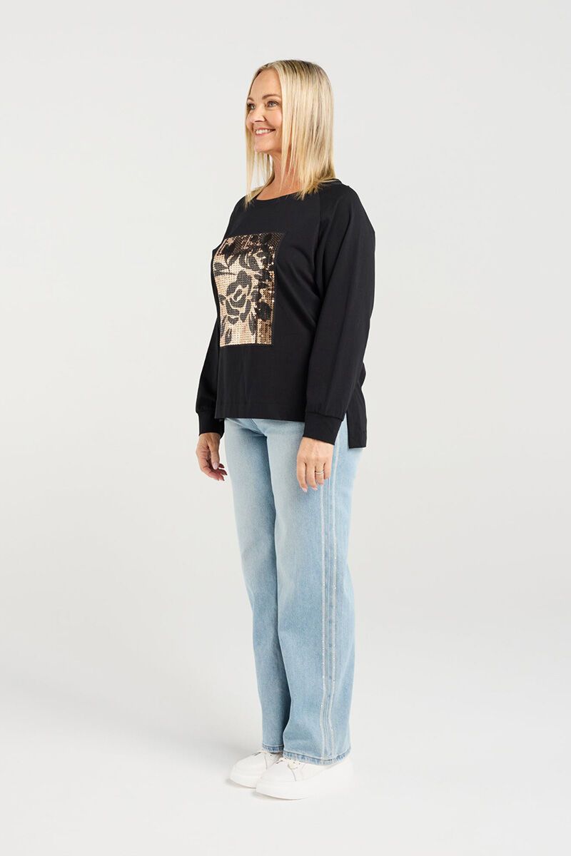 The Zafina Calla T-Shirt is an easy statement piece with a relaxed silhouette and eye-catching sequin floral panel. Soft and comfortable with just the right amount of sparkle, it’s perfect for adding a little shine to everyday outfits.