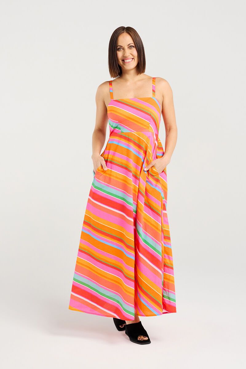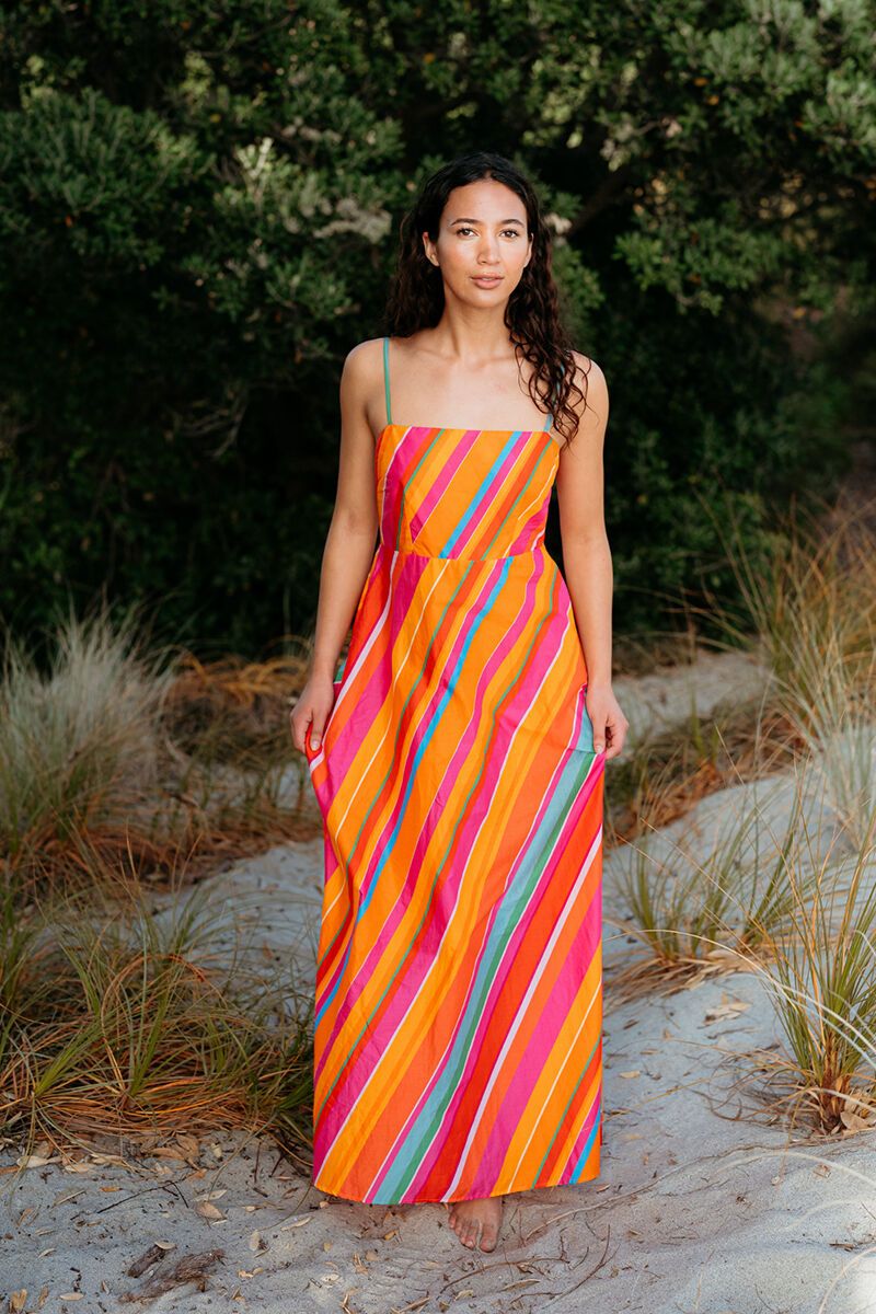 The Zafina Clementine Dress is made for sunshine. With its bright stripes and easy summer silhouette, it’s a style that feels fresh, fun, and ready for warm days. Just add sandals and a tote for an effortless holiday look.