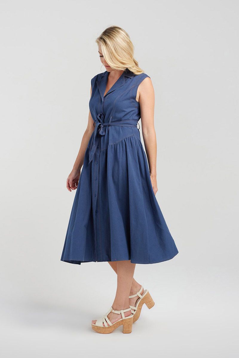 Embrace classic elegance with the Zafina Ivy Dress. This sleeveless dress features a button-down front and a collar V-neck for a touch of sophistication. With practical pockets and included belt, you can easily cinch the waist for a personalized fit. The relaxed fit and timeless design make this dress a versatile choice for any occasion